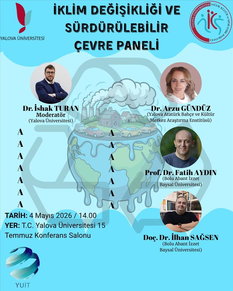 'İklim Değişikliği ve Sürdürülebilir Çevre Paneli' 4 Mayıs 2026 Pazartesi günü saat 14:00'te 15 Temmuz Konferans Salonu’nda gerçekleştirilecektir. Akademisyenlerimiz, öğrencilerimiz ve tüm halkımız davetlidir.