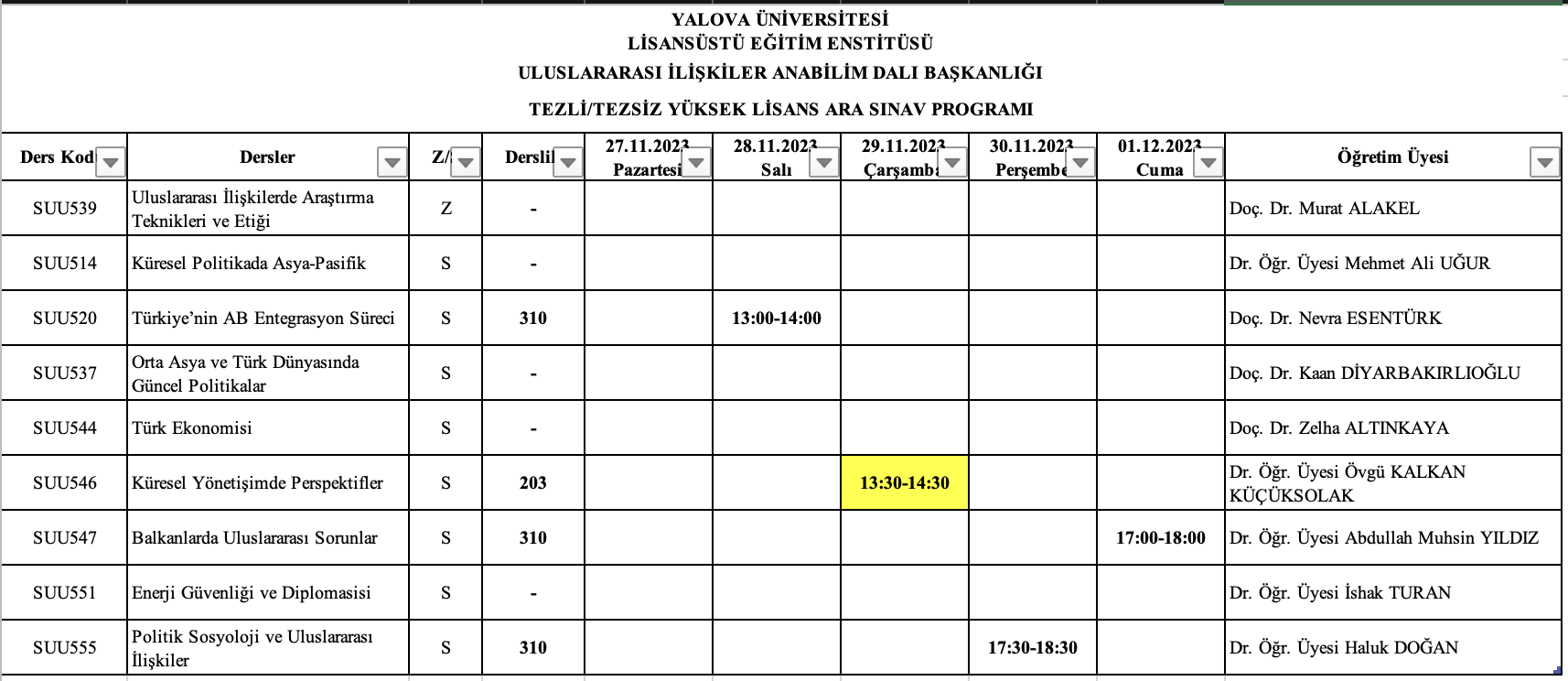 Duyuru (28 Kasım 2023): Türk Dili I (Uluslararası Öğrenciler) dersinin sınav dersliğinde değişiklik
